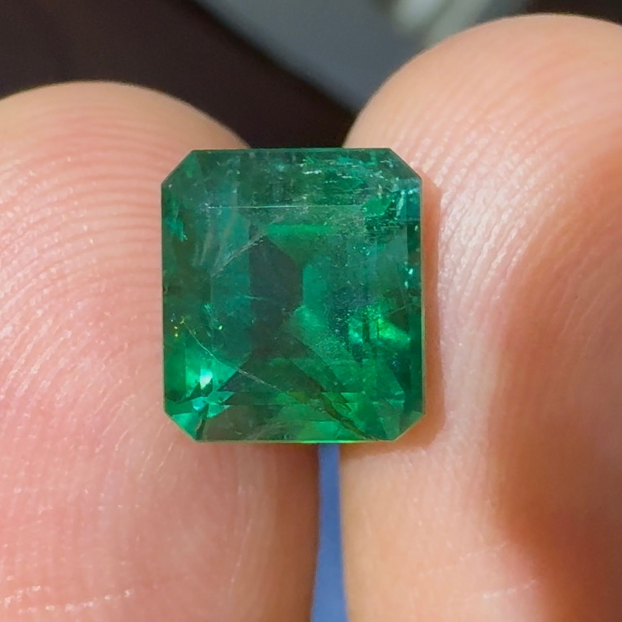 A vivid 2.35 carat Emerald Cut Zambian Emerald with exceptional clarity and rich green color. Its elegant cut and intense hue make it a perfect choice for luxurious fine‑jewelry creations.